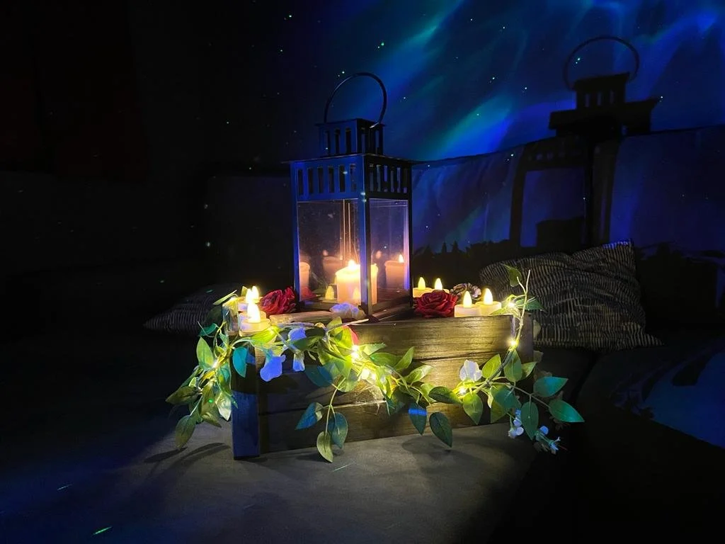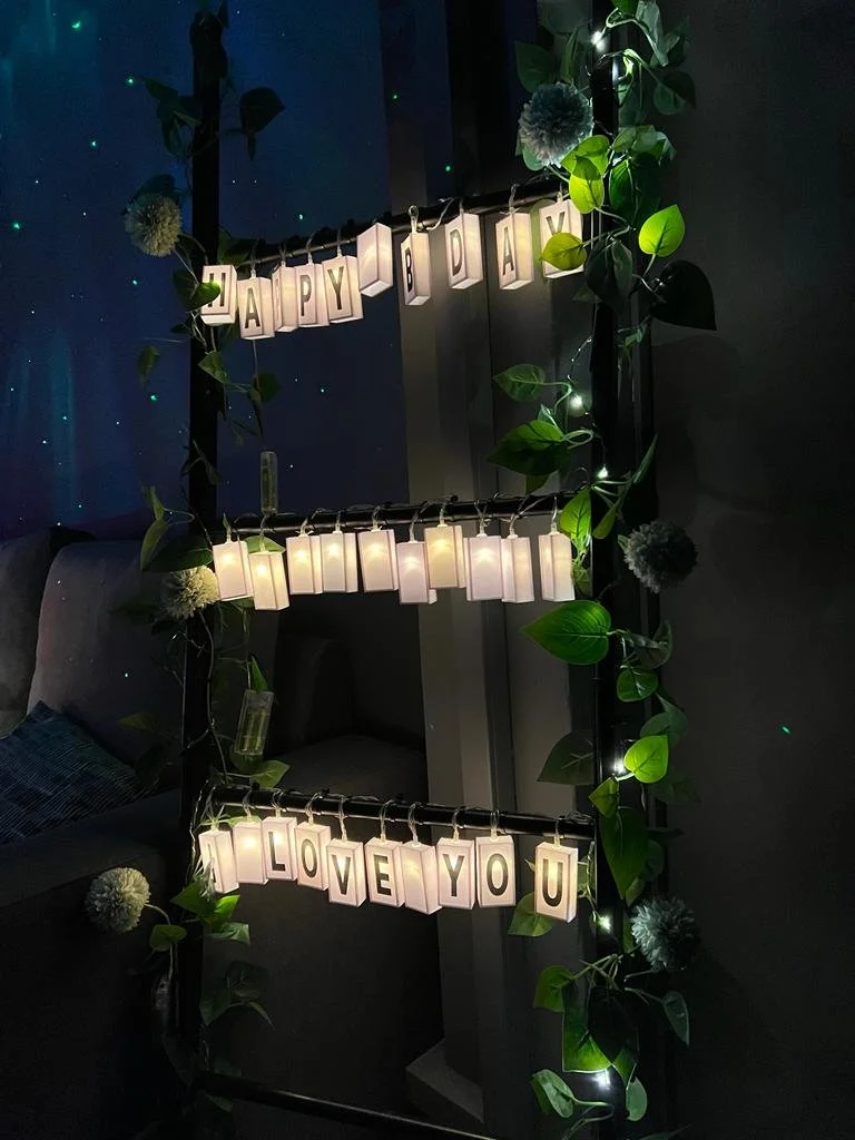 Starry night has everything romantic decor, in addition to the starry night ambience and customizable light ladder for a short message.